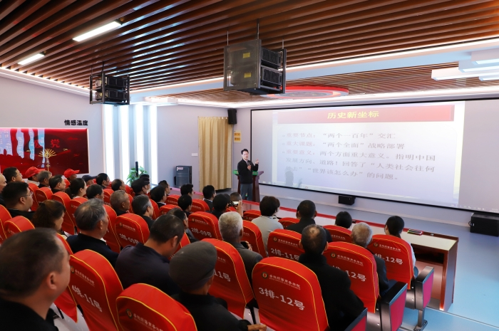 在观看精彩深刻的微党课视频后,安徽省委党校教授、绿海学院校长助理、马克思主义学院党支部书记郝欣富教授为马场村党总支成员作了《学习贯彻党的二十大精神》专题微宣讲,深入生动解读了党的二十大精神,并结合当前实际,深刻阐释了党的二十大提出的新思想、新论断、新部署、新要求。并结合绿海教育事业的发展规划,阐释了下一步学校深入贯彻党的二十大精神,强化党建引领,促进事业发展的目标、任务与举措。他强调,其目的和意义在于赓续红色血脉,奋进伟大时代,努力书写无愧于时代、无愧于人民、无愧于历史的绿海新篇章。