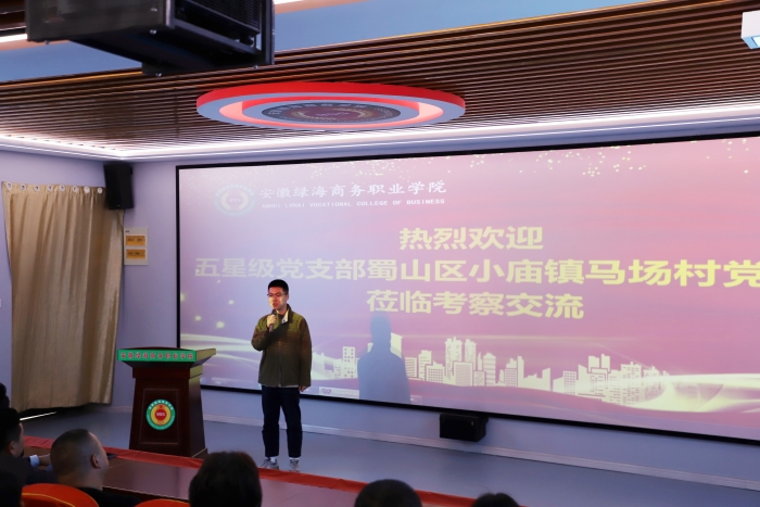 在观看学校专题片和中国教育台播出的星青年《职教礼赞》科教片后,常务副校长常务副院长代表学校致欢迎辞,对马场村党总支一行的到来表示热烈欢迎,并从办学历史、办学成果、人才培养、产教融合、校企合作等方面对学校的基本情况进行简要介绍。