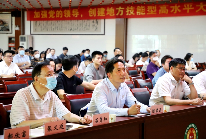 为进一步提升全体教职员工的专业能力和综合素质,更好地推动学校“双高”建设工作,5月19日下午,学校党委、董事会特邀中国高等教育学会职业技术教育分会会长、知名职教专家、浙江金融职业学院发展咨询委员会主任、365集团专家指导委员会副主任周建松教授莅临,为绿海学院高等职业教育研究中心揭牌并作《双高目标下的关键能力建设》专题报告。学校党政领导陈孝云、石秀和、刘兴杰、常务副院长、江传瑞、陈艺鸣,全体教职员工聆听报告,报告由执行校长许信旺主持。