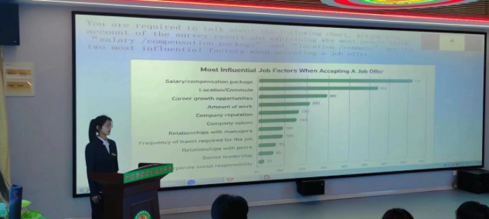 本次活动,主要分为两轮。第一轮为“现场描述”,大赛举办方给出一个图表,让选手自行准备2~4分钟演讲。第二轮为“回答问题”。首先大赛举办方准备好五篇海报,并编上序号,让选手抽签出一个序号即相对应的一篇海报。选手看完海报后,评委老师将围绕海报内容进行提问。在这场比赛中,第一轮主要比的是选手们的口语能力,而第二轮的比赛,更考验选手的综合实力。如果第一轮为“比赛”,那么第二轮应该是一场真正的“较量”!