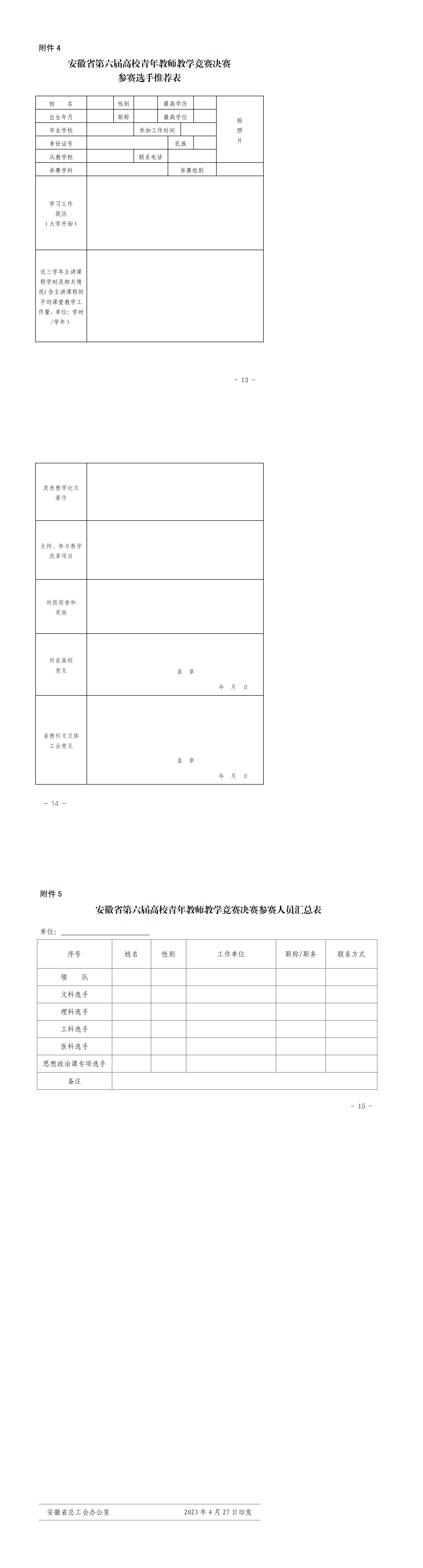 安徽省总工会 安徽省教育厅关于举办安徽省第六届高校青年教师教学竞赛的通知