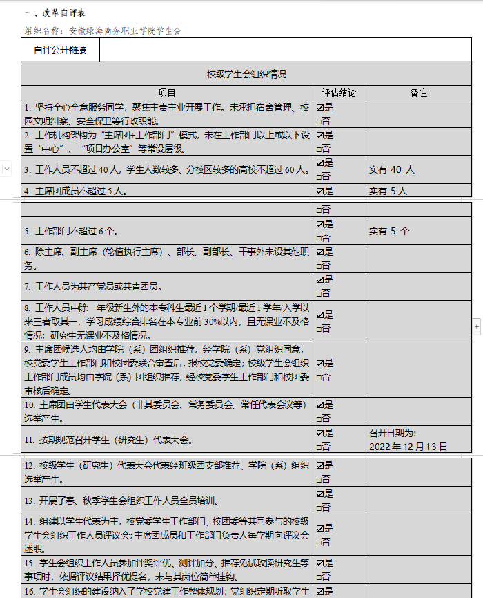 为落实共青团中央、教育部、全国学联联合下发的《关于推动高校学生会(研究生会)深化改革的若干意见》,以及《高校学生会组织深化改革评估工作方案》要求,接受广大师生监督,现将我院学生会改革情况公开如下