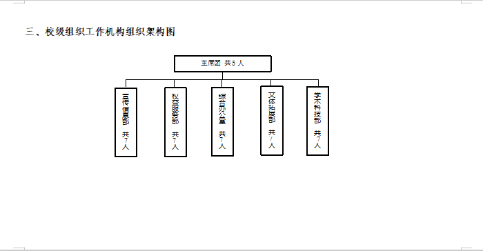 第十六条 院学生会设以下职能机构:综合办公室、媒体宣传部、权益服务部、文体拓展部、实践创新部。各职能部门设部长1名,副部长1-2名,干事不超过6名。