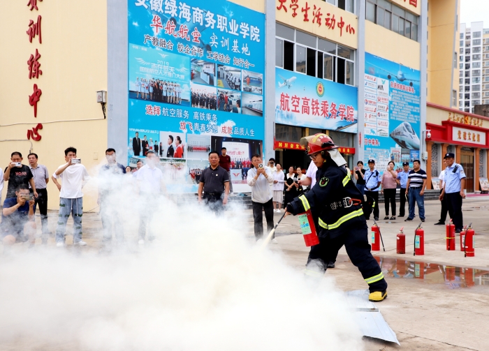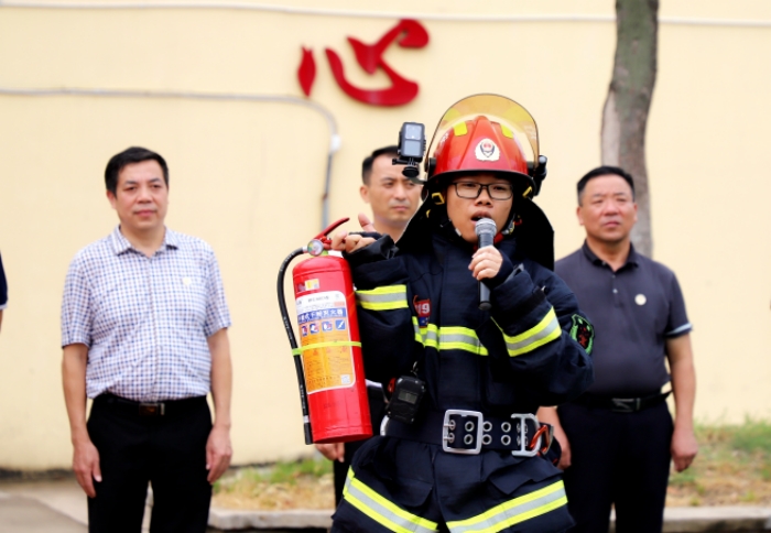 应急疏散完毕后,经开区消防救援大队丹霞救援站黄宣铭站长向集合点现场的师生详细介绍了“如何扑灭初期火灾”“火灾安全疏散逃生”等消防安全知识,讲解灭火器材装备的性能、用途及操作要领,指导实操灭火器环节吸引了不少同学踊跃参与体验。