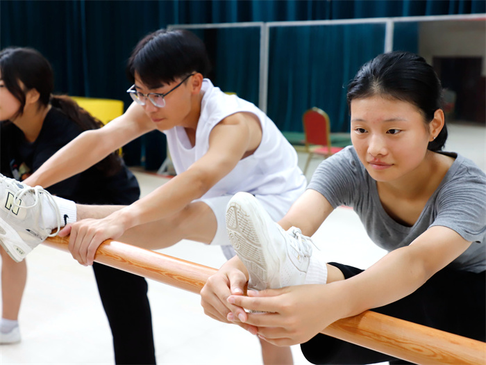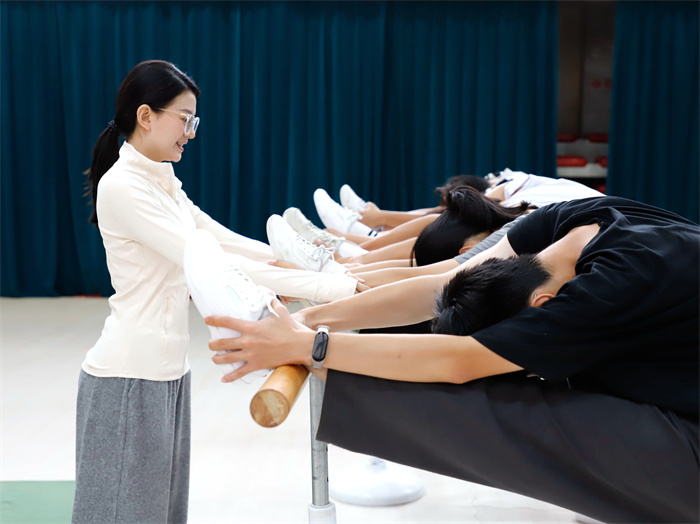 老师正在指导学生做形体训练