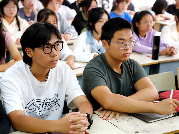 同学们在敞亮的教室里