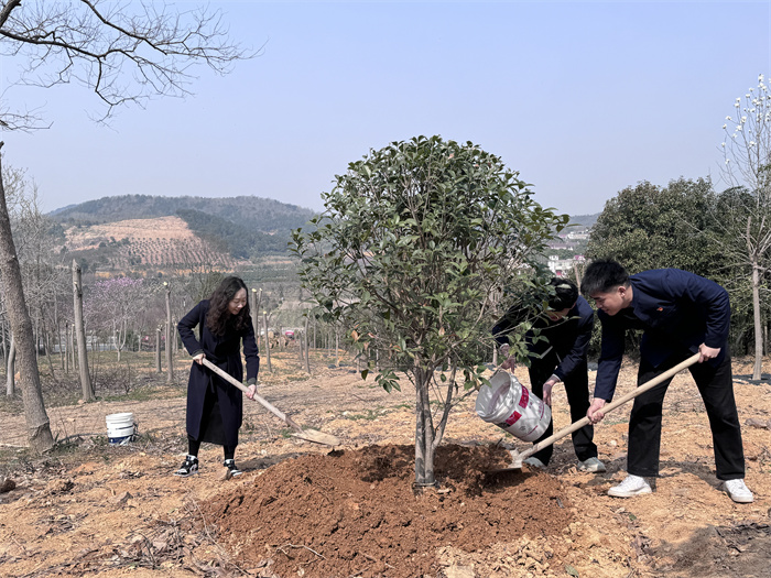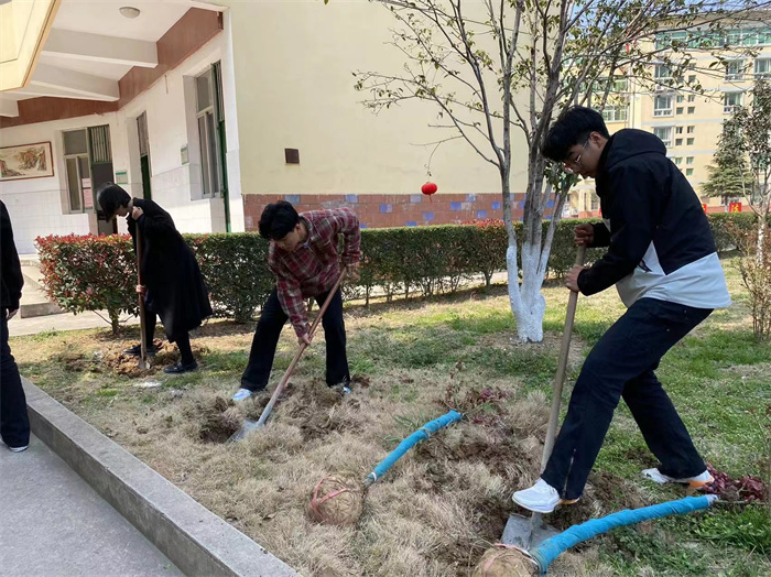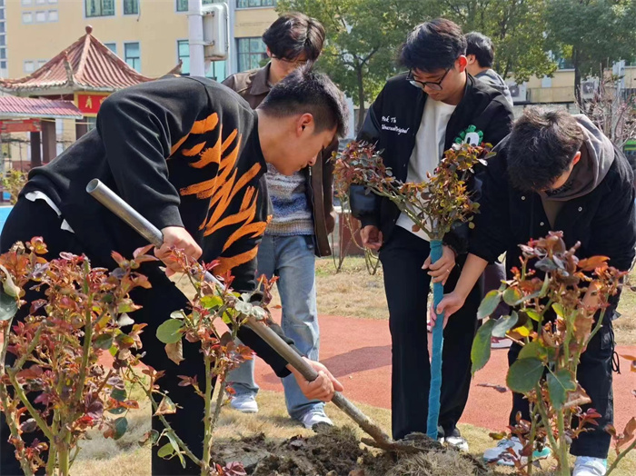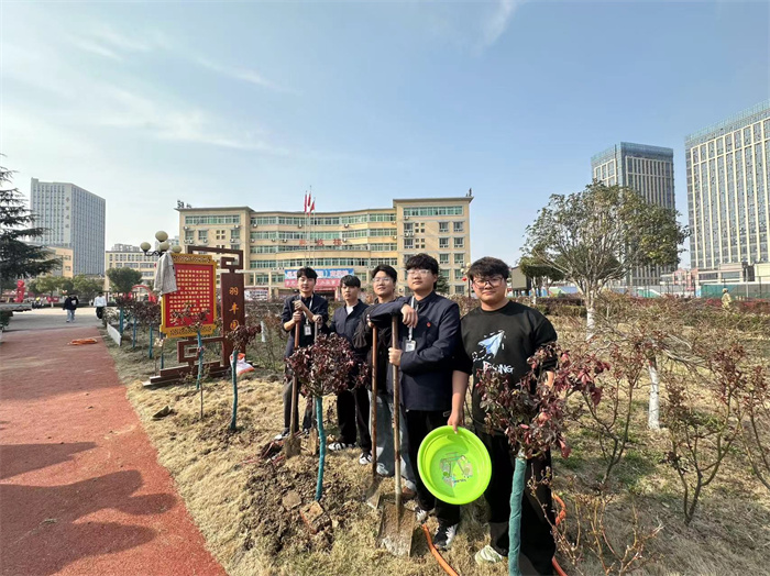春风润物,“植”得美好。植树现场,各二级学院师生们分工协作,扶正苗木、挥锨铲土、踏土固根、灌溉清水…以实际行动共同参与植树护绿行动,信息工程学院党员师生代表专门前往共建单位庐江县冶父山镇开展植树活动,为绿美生态建设贡献星青年力量。春风十里,不及一抹绿意。师生们用自己勤劳的双手,挥锹植树,培育绿茵,晓一叶之理,种一树美好。经过大家的共同劳动,300多棵新栽的不老松、金桂、高杆月季等迎风挺立,焕发勃勃生机。