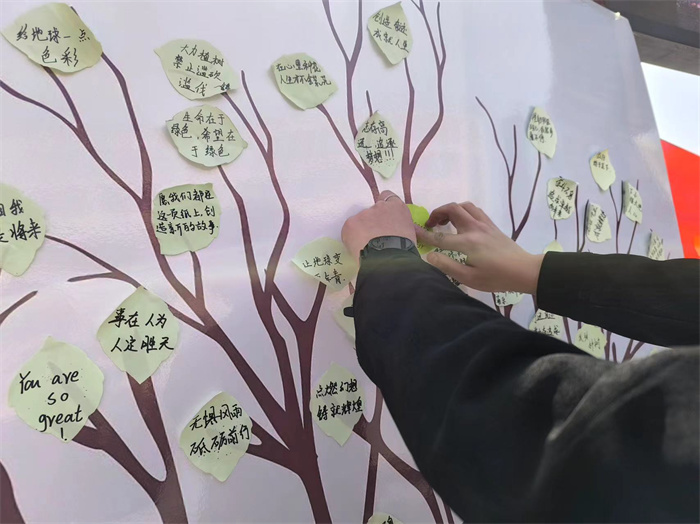 “树”写春意,铭志于树。种下树苗后,学生们以班级为单位,共同为校园的树木挂上了特别的身份牌,并举办了“共许绿色心愿 携手筑梦绿海”心愿寄语活动,借此寄情于绿,与树木同成长,“树”梦想,用实际行动为绿色校园建设贡献一份力量。“今天很充实,也很有意义,一定会把口号落实到行动中,也希望在学校不断成长,枝繁叶茂。”星青年学子们纷纷表示到。