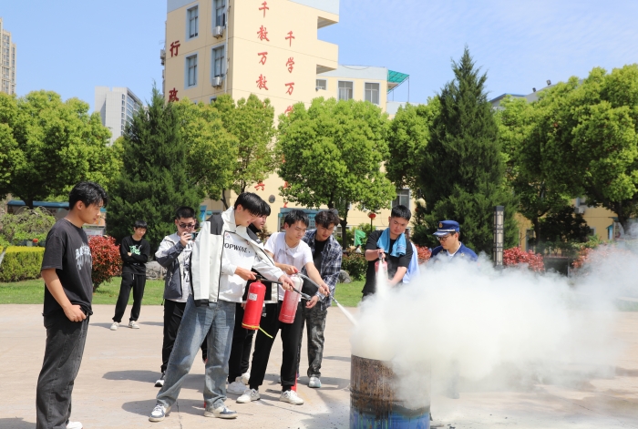 应急疏散演练完毕后,经开区消防救援大队丹霞救援站黄宣铭站长向现场师生详细介绍了“如何扑灭初期火灾”、“火灾安全疏散逃生”等消防安全知识,讲解灭火器材装备的性能、用途及操作要领,指导实操灭火器环节吸引了不少同学踊跃参与体验。