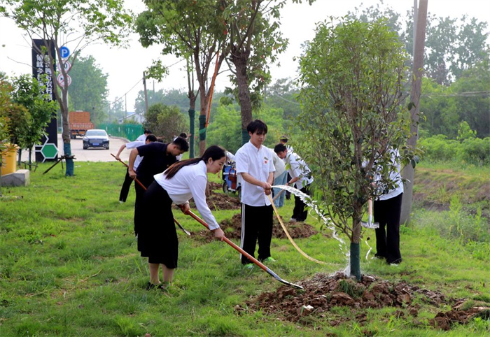 校地双方还一起共植友谊林。此次绿海学院精心挑选带来了三角枫、香樟、桂花树三个树种共七棵,象征着幸福、和谐、丰收、美好之意。大家热情高涨、挥锹铲土、浇水夯实……植下一抹绿、种下新希望。绿海学院表示,未来,每年都将精选树种开展共植友谊林活动,期待双方真携手、常互动,出成果、见成效,让友谊与合作长存,让绿海学子的青春在乡村振兴的舞台上绽放更多精彩。