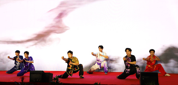 晚会现场,文艺汇演内容丰富,形式多样,诗歌朗诵、乐器演奏、歌舞、武术等异彩纷呈。