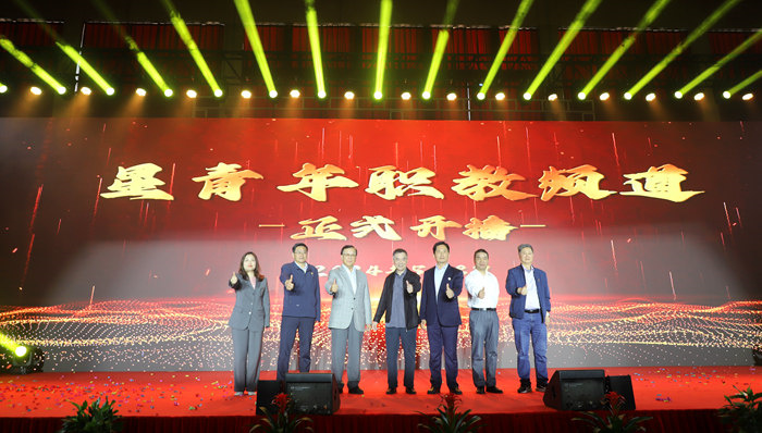 “5!4!3!2!1!”,随着手掌型键钮的集体按下,“星青年职教频道”正式启动!陈孝云、张吉平、苗峰、许信旺等共同启动“星青年职教频道”。“星青年职教频道”以“请党放心,强职有我”为主旨,致力于拓宽职教师生的实践路径与创新空间,通过与安徽广电集团共同策划运营,传播职教先进理念与经验、绿海学院星青年文化以及办学育人成果。届时将通过网络自媒体平台和数字化传播方式,将职教成果和星青年文化推向大众视野。