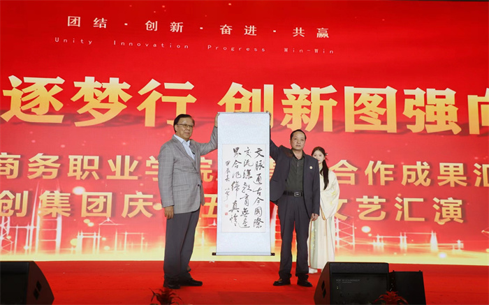 “有朋自远方来,不亦乐乎”。绿海学院星青年导师团带来二胡、古筝与书法融为一体的《古风国乐》,表达对远方贵宾欢迎之情。绿海学院党委委员、行政文化总监张义廷现场向马来西亚吉隆坡建设大学赠送墨宝“合作共享,未来可期”、“文脉通古今,国际交流深,教育无边界,合作缔真情”,表达了对国际教育合作的真挚情谊和美好祝愿。