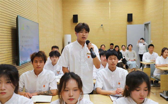 经贸旅游学院以“星青年文化培训之演说力”作为班会主题。班会特设互动环节,并随机给定主题让学生进行简短演说练习,现场星青年学子自信大方、热情洋溢,即兴演讲引来阵阵掌声。演说力是星青年人才培养所要具备的“演说力、执行力、创造力、礼乐力、领导力”五种能力之一,学校在日常教育教学中注重相关能力培养。班会上,陈老师注意到一位比较内向的学生,一点点从他的名字作引入,不断挖掘学生自身亮点,告诉学生“你很优秀”,引导学生大胆展示自己,最后他从胆怯到微笑,自信起来。