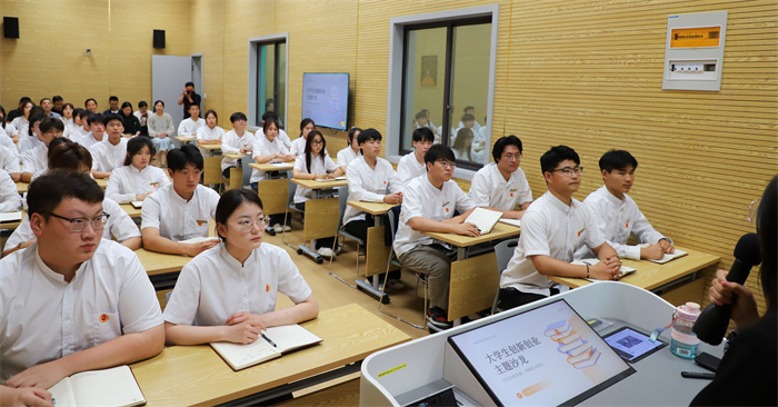 “在大学期间,我要好好学习创新创业知识与技能,我想以家乡生产的特色农产品作为创业项目,希望可以带领乡亲们发家致富。”数字商贸与直播学院主题班会以沙龙座谈的形式,聚焦“大学生创新创业”来开展,还特地邀请了创业达人为学生们分享创业心得、实践案例、项目操盘技巧等,受到启发和感染的学生们现场头脑风暴,自信大方畅谈个人创新创业想法。主题班会共话双创、赋能未来,助力星青年学子培育创新思维,明确职业规划。陈老师激励他们,发挥专业所长,找准人生定位,奋斗幸福人生。