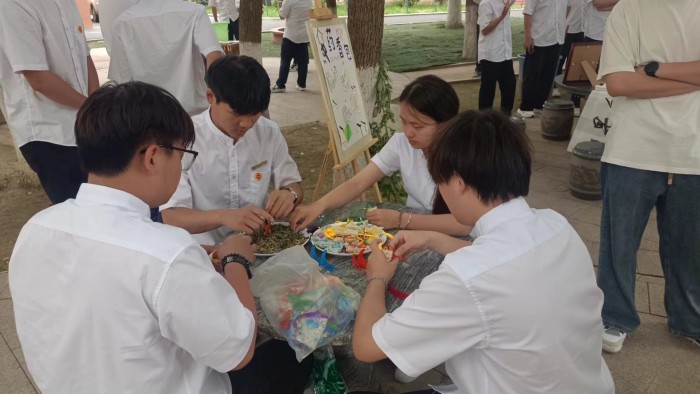 极具特色的漆扇绘制吸引了众多同学参与,大家亲手绘制出属于自己的精美扇子。同时,艾草、花束和香囊等传统元素的展示与制作,让人们亲身感受到端午节的独特氛围。
