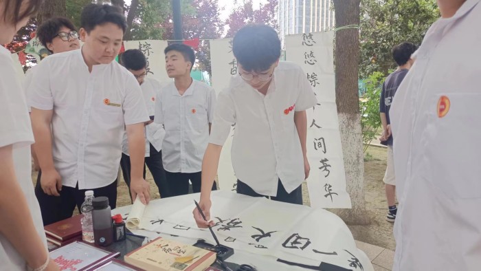 书法展示区墨香四溢,同学们挥毫泼墨,书写出对端午的祝福。而投壶游戏区域则充满了欢声笑语,大家尽情享受着传统游戏带来的乐趣。