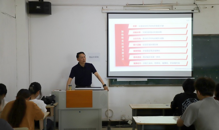6月13日上午,学院督导专员、党委书记孙永走进课堂,为工商管理学院会计233班的同学们上了一堂别开生面的思政课。他以“科学发展观的时代意义与实践路径”为主题,为师生们详细解读了科学发展观的形成背景、科学内涵和核心要义。他强调,科学发展观是指导我国经济社会发展的重要思想武器,对于推动全面建设社会主义现代化国家具有重大意义。他指出,科学发展观不仅是一种理论,更是一种实践指南。只有将其落实到实际工作中,才能真正推动经济社会的发展和进步。在讲授过程中,孙永还紧密结合学校实际,阐述了科学发展观在学校工作中的应用。他强调,作为教育工作者,要深刻理解和把握科学发展观的精神实质,教师要讲好思政课、学生要学好思政课。他鼓励师生们要深入学习科学发展观,将其内化为自己的行动准则,要胸怀崇高理想、坚定信念,为实现个人价值、社会价值努力拼搏。