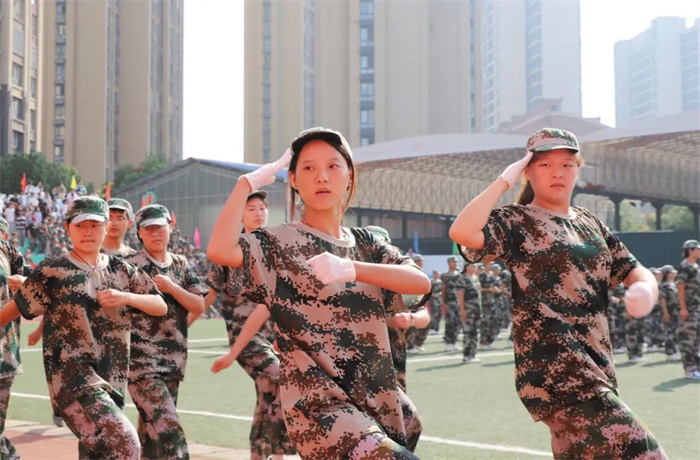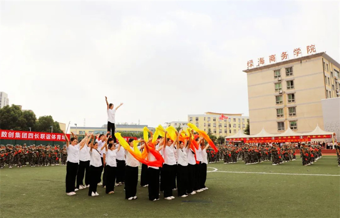 新生方队踏着激昂的分列式进行曲,依次走向主席台,进行了方队、队列展示和擒敌拳、匕首操等汇演。吸睛夺目的特色方阵、利落干脆的格斗术、强劲有力的匕首操、青春活力的韵律操、英姿飒爽的擒敌拳,一招一式都整齐划一、气势恢宏,口号嘹亮,步伐坚定,展现了新时代绿海星青年的青春风采和精神风貌,向全校师生递交了一份优异的答卷,向新中国75周年华诞献礼。