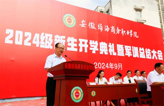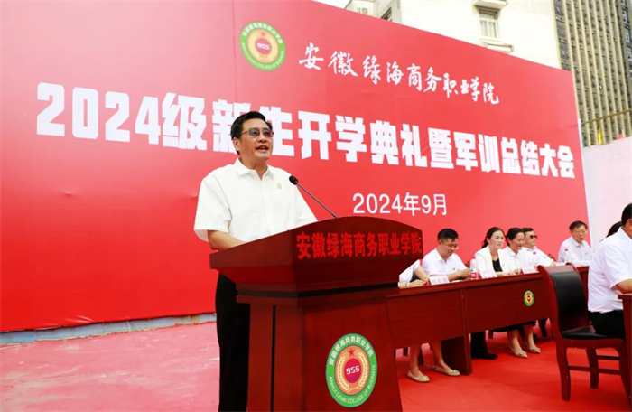 最后,执行校长许信旺发表总结讲话。他代表学校全体师生员工,向加入绿海大家庭的新同学表示热烈的欢迎!许信旺表示,在今天同心筑梦、共襄复兴伟业的时代,绿海学院扎根合肥这片沃土,乘势而上,书写了与城市发展相映生辉的时代篇章。学校深耕“星青年”人才培养模式,肩负着为区域经济提供技术技能人才支撑的重要使命,发挥人才培养、科学研究、社会服务、文化传承创新、国际交流与合作五大职能,各项事业取得了长足发展,更在国际交流与合作的舞台上探索出“职教出海”新范式,为在校学生升学提供了最便捷的通道,也为高质量共建“一带一路”联盟注入职教动能。
