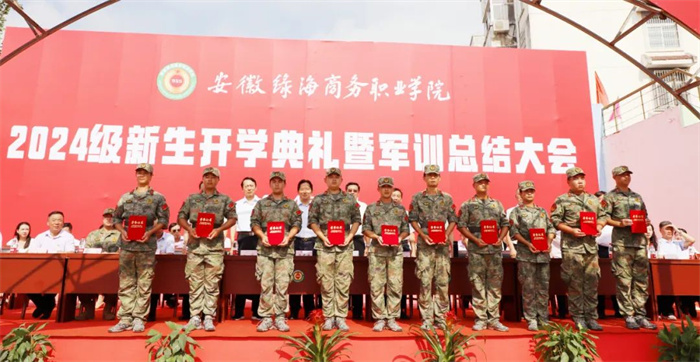 副校长吴玉宣读《关于军训先进集体、先进个人的表彰决定》,由学校领导和嘉宾为获奖单位和个人进行颁奖,以此勉励师生们在今后学习与成长道路上,不忘军训之态、铭记军训之风,再接再厉,创造更多辉煌。