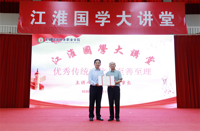 “江淮国学大讲堂”由365集团、安徽省当代社会主义核心价值体系研究中心、安徽省高等职业院校创新创业联盟共同主办,集文化宣讲、传播、教育、交流等功能于一体,以“求知·鉴赏·交流·修身·创造”为主题大力推动实施《中华优秀传统文化传承发展工程》。本次讲座也是为深入学习贯彻党的二十届三中全会精神和习近平总书记在全国教育大会上的重要讲话精神,进一步提升师生的文化素养和道德品质,推动校园文化建设。