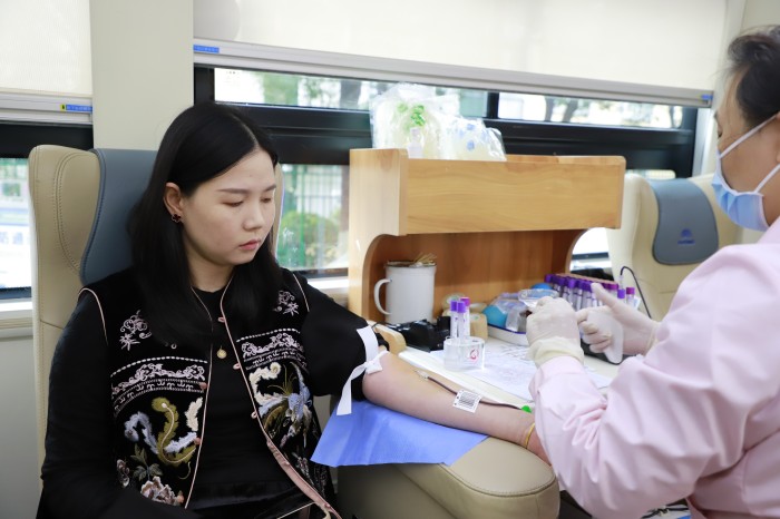 献血现场秩序井然,师生们有条不紊地填写表格、测量血压、抽血化验。排队等候的过程中,大家的脸上洋溢着热情与期待。他们有的是第一次参加献血的“新生力量”,略显紧张却又充满勇气;有的则是多次献血的“老将”,淡定从容且满怀自豪。一位同学表示“献血是一件很有意义的事情,能够帮助那些需要帮助的人,我感到非常开心。”