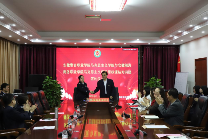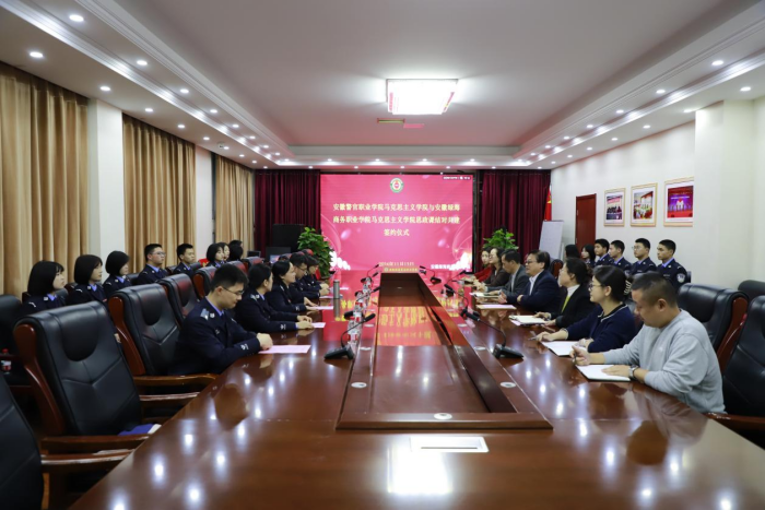 在结对共建协议签署仪式上,马克思主义学院党支部书记祝中侠对安徽警官职业学院马克思主义学院负责人王芸一行的到访表示热烈欢迎,并就学院师资队伍、课程建设、内部管理等方面的基本理念、工作成效、努力方向等作了介绍。他表示,安徽警官职业学院马克思主义学院是安徽省首批高职高专院校重点马院建设单位,两院结对共建将有力地推动和促进我院的建设和思政课教学质量。此次签署结对共建协议也为两院合作共建搭起更高水准沟通交流平台,希望两院以此次签约为契机,在课程建设、学术交流、科研项目等方面深入合作,高质量办好新时代高校思政课。