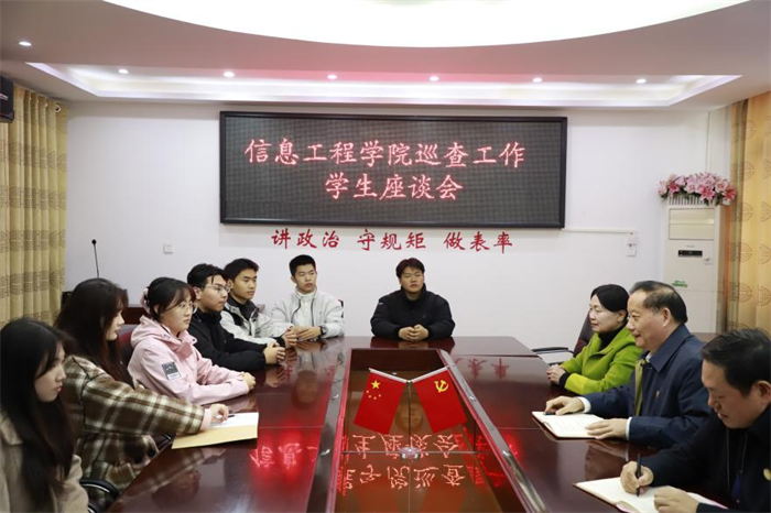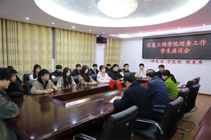 11月20日,为推进信息工程学院巡查工作,进一步提升学院学风建设和学生综合素质,校纪委组织召开信息工程学院巡查工作学生座谈会,党委副书记、纪委书记刘兴杰,纪检监察室主任邓奕成,纪委办公室主任张微以及来自信息工程学院的16位学生代表参会。座谈会由邓奕成主持。