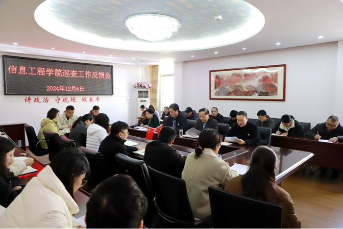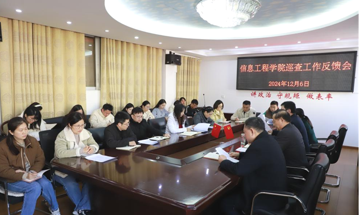 纪检监察室主任邓奕成宣读了《关于信息工程学院巡查工作的通报》。周宗斌表示,信息工程学院应以此次巡查为契机,正确对待巡查意见,对发现的问题要即知即改、立行立改。学院领导要带头落实整改措施,确保整改工作取得实效。