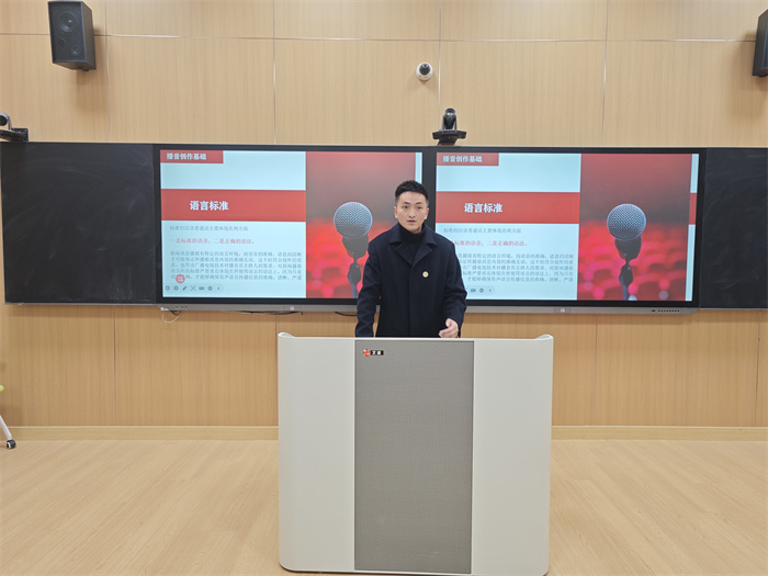 杨杰老师主要从播音标准、表达规范、播报态度三个方面进行了理论讲解和实战培训。杨杰老师首先强调要注重语言的基本功练习。无论是新闻播报、节目主持还是其他形式的播音工作,都需要清晰、准确、流畅的语言表达。只有掌握扎实的语言基本功,才能在面对各种复杂的播音任务时游刃有余,确保信息的准确传递。