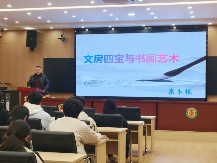 此次讲座不仅丰富了同学们对文房四宝文化内涵的认知,也为学院营造了浓厚的文化艺术氛围,助力传统文化在校园中生根发芽,激发更多学生投身于传统艺术的学习与传承之中。(刘婷婷 复审:方萌萌 审核:韦永久、郁宗菊)