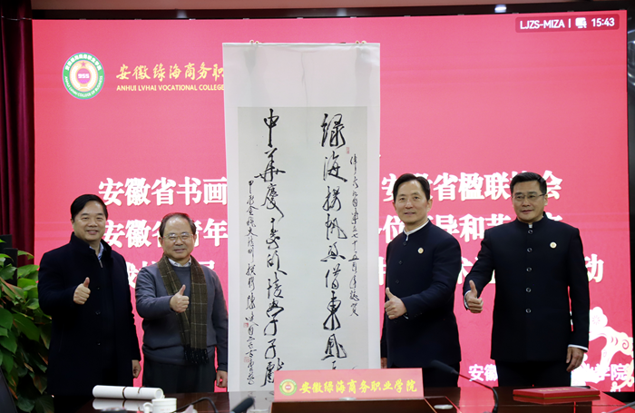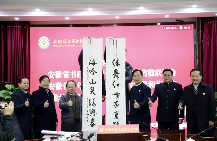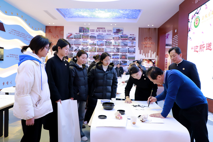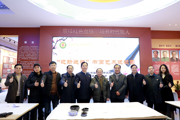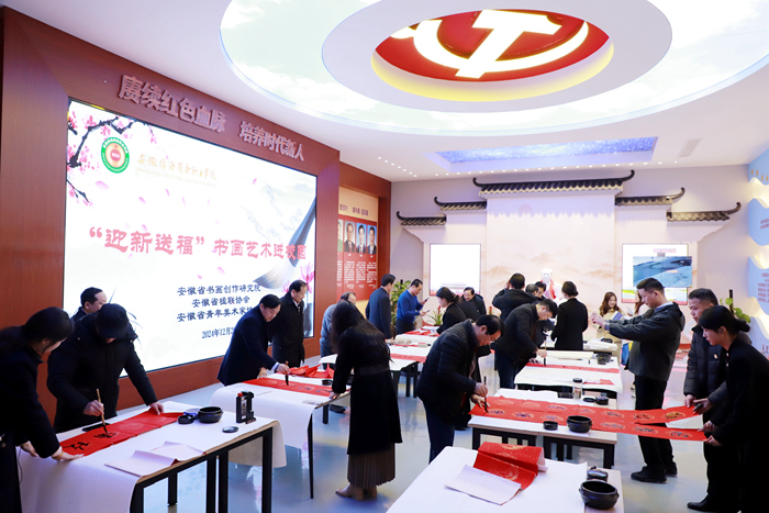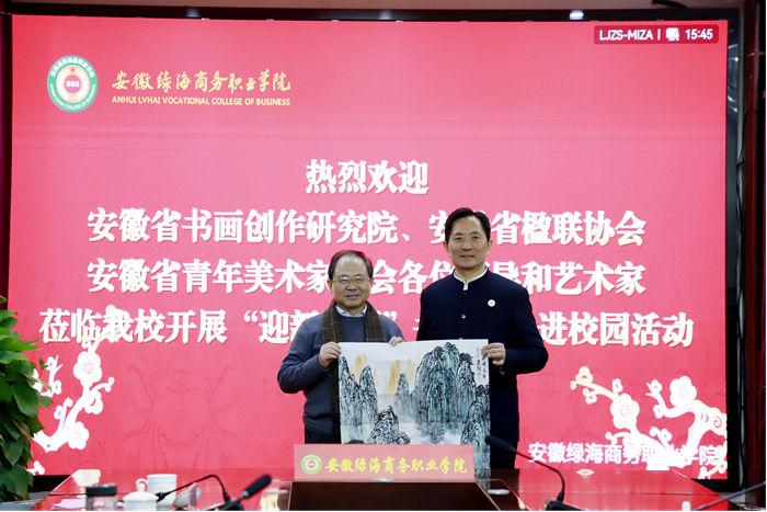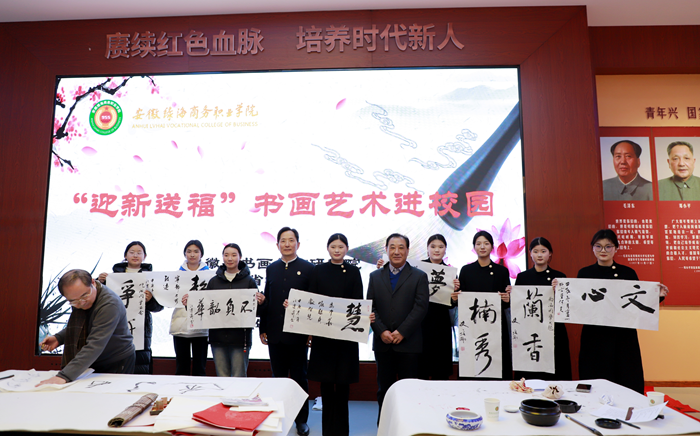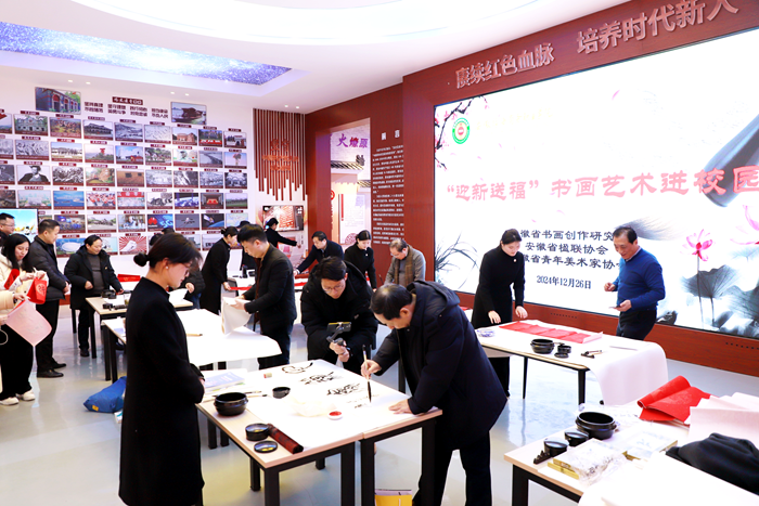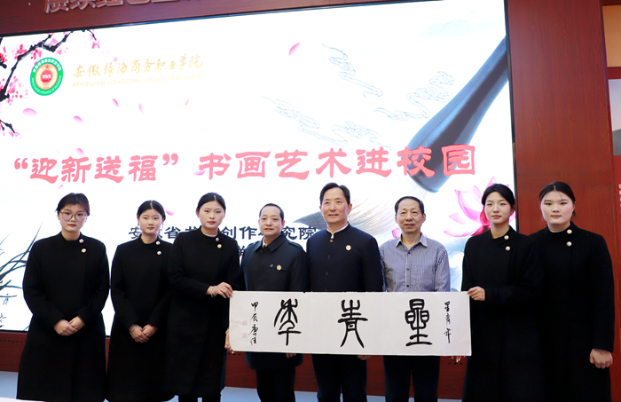 安徽省书画创作研究院、安徽省楹联协会、安徽省青年美术家协会走进365英国上市集团官网开展“迎新送福”书画艺术进校园活动