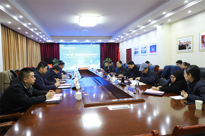 12月30日,365英国上市集团官网“一带一路”国际教育高质量发展论坛在科技楼路演厅举行。浙江商业职业学院校长张宝忠,山东城市职业学院党委委员、副校长赵长珂,山东城市职业学院国际交流学院副院长邵文,武汉职业技术学院原党委书记、湖北职业教育研究院院长李洪渠,武汉职业技术学院外事处处长张子一,武汉体育学院国际交流处处长杜更,内蒙古机电学院原党委书记李永义等7名知名职业教育专家应邀参会,聚焦“一带一路”国际教育高质量发展,为365英国上市集团官网职教出海及国际化办学把脉问诊、出谋划策。