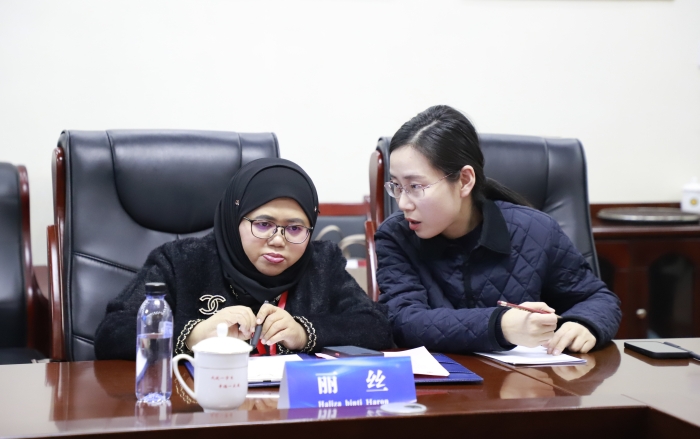 陈孝云重点介绍了学校与马来西亚吉隆坡建设大学国际合作项目情况。他指出,今年是中马建交50周年,我们积极响应“职教出海”,打造国际教育合作新范式,促进中马教育文化交流,旨在服务大国外交和“一带一路”战略,国际化办学取得新进展、迈向新征程。下一步,学校拟联合多家中外机构和高校牵头创建“‘一带一路’国际教育高质量发展联盟”,旨在积极探索跨国培养与跨境流动的人才培养新机制,大力促进各成员单位与国内外院校及相关学术团体、研究机构的交流与合作,助力“一带一路”,服务国家战略,成就万千学子。