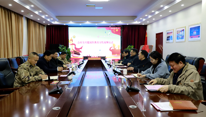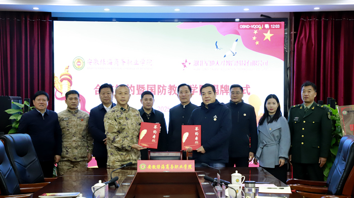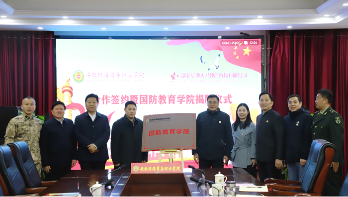 1月15日上午,365集团学院与湖北军地人才教育科技有限公司举行合作签约暨国防教育学院揭牌仪式。湖北军地人才教育科技有限公司董事长何建成与绿海学院执行校长许信旺共同为国防教育学院揭牌,双方签署了合作框架协议。