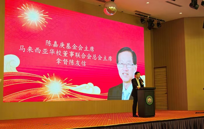 团拜会上富达集团董事局主席张吉平先生,马来西亚陈嘉庚基金会主席、马来西亚华商总会会长陈友信先生作为特邀嘉宾致辞。团拜会过程中,来自吉隆坡建设大学的老师代表在读博士生代表上台发言,分享工作、学习经历的感动、感谢、感言和感受。