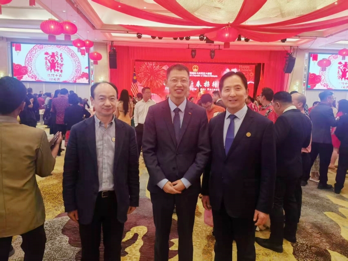 团拜会结束后,陈孝云教授一行受邀在马来西亚工程院院士吉隆坡建设大学副校长陈志辉教授的陪同下赴中国驻马来西亚大使馆参加乙巳年新春招待会,会上陈孝云教授同马来西亚政要进行了广泛交谈,并与中国驻马来西亚大使馆教育参赞赵长涛先生、科技参赞赵向东先生等进行了亲切深入的交流,向中国驻马来西亚大使汇报了星青年国际集团在马项目进展和吉隆坡科技大学下一步发展情况。(丁昊)