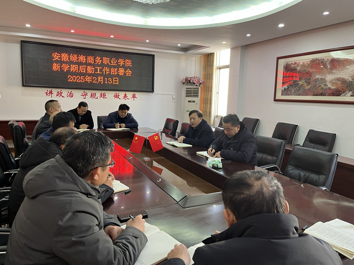 收心归位鼓干劲,凝心聚力启新程。为全面做好新学期后勤服务保障工作,提升校园服务质量,更好地满足师生日常需求。2月13日上午,总务处组织召开了新学期后勤工作部署会,会议由总务处处长孙圣祥主持,副校长何世昆出席会议,总务处各科室负责人及物业公司负责人参加会议。