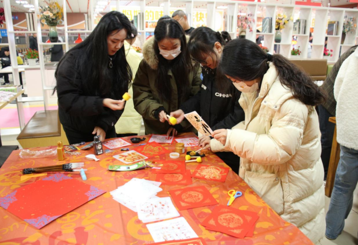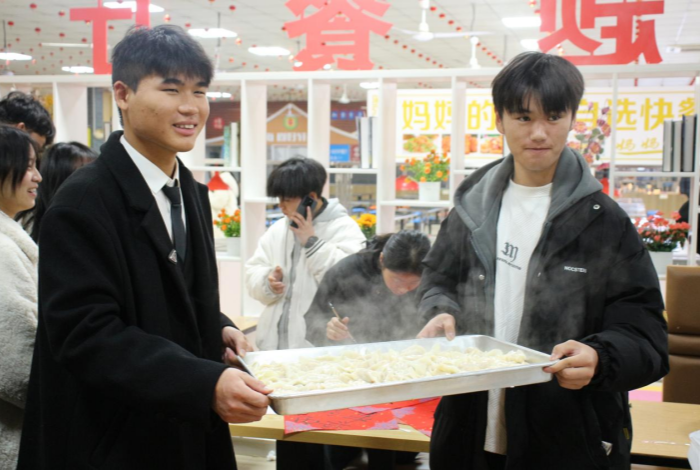活动现场,包饺子、包汤圆、写对联、剪纸等传统民俗活动精彩纷呈。同学们热情高涨,纷纷动手参与其中。在包饺子和包汤圆的区域,同学们手法娴熟,一个个饱满的饺子和圆润的汤圆在他们手中诞生;写对联处,墨香四溢,同学们挥毫泼墨,写下对新年的美好祝愿;剪纸活动中,大家用剪刀和彩纸创作出精美的图案,展现出丰富的想象力和创造力。