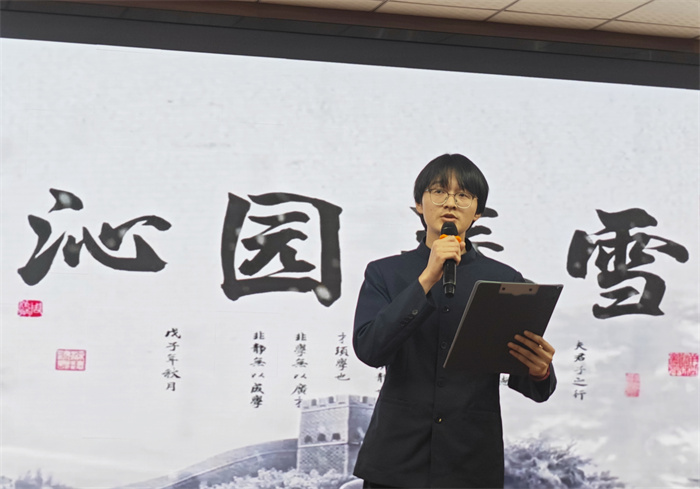 活动现场,诗意浪潮与人文温度交织升腾,来自五个学院的师生以诗歌为媒,演绎春的万种风情。信息工程学院《春之韵》以数字经纬编织诗行,工商管理学院《春江花月夜》再现千年古韵,经贸旅游学院《春天里的中国》激荡家国情怀,科学与艺术学院以《在冬天的麦苗上,看到中国的春天》传递希望之音。马克思主义学院高恂教授更以原创诗作《春天》惊艳全场,其深情朗诵与澎湃感染力赢得满堂喝彩。附近社区8岁萌娃清脆诵读《咏柳》,童声稚语中跃动着文化传承的薪火。