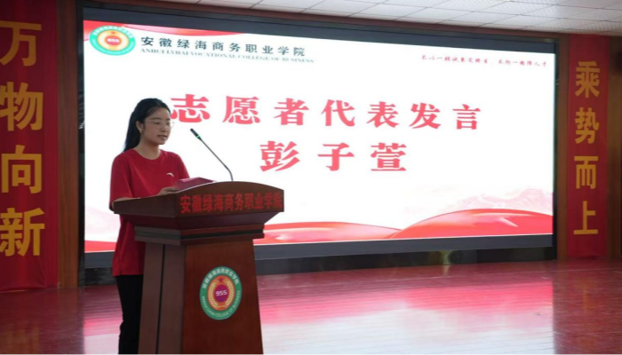 仪式在庄严的国歌声中拉开帷幕。志愿者彭子萱作为青年学子表率登台发言,目光坚定地表示:"作为新时代大学生,能够参与全国性体育赛事志愿服务,既是无上的荣誉,更是沉甸甸的责任。我们将以最饱满的热情、最严谨的态度、最专业的服务,践行志愿精神,展现绿海星青年的卓越风采,为赛事顺利举办保驾护航!"掷地有声的话语凝聚着全体志愿者扎根实践、服务社会的坚定信念。