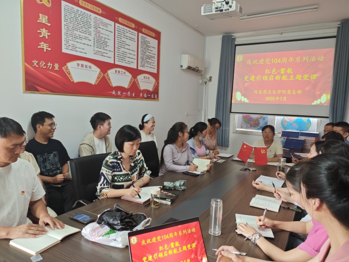 为庆祝中国共产党成立104周年,深学细悟习近平总书记关于加强党的作风建设重要论述,强化党员干部的纪律意识与作风建设,6月26日,马克思主义学院党支部开展了“红色·蓄航——党建引领启新航”主题党课活动。此次活动将党的光辉历史回顾与深入贯彻中央八项规定精神学习教育要求紧密结合,在回顾党的奋斗征程中汲取奋进力量,在学习政策规定里筑牢廉洁防线。