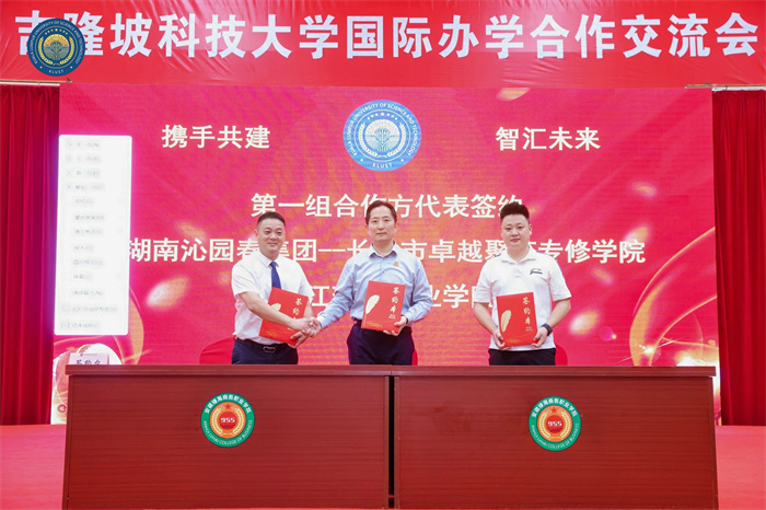 大会签署了《吉隆坡科技大学事业共同体联合行动公约》。大会遴选了具有代表性的10家合作单位如湖南沁园春集团,九江理工职业学院,江西剑学科技有限公司,山东双元教育咨询有限公司等分成五组上台签约。