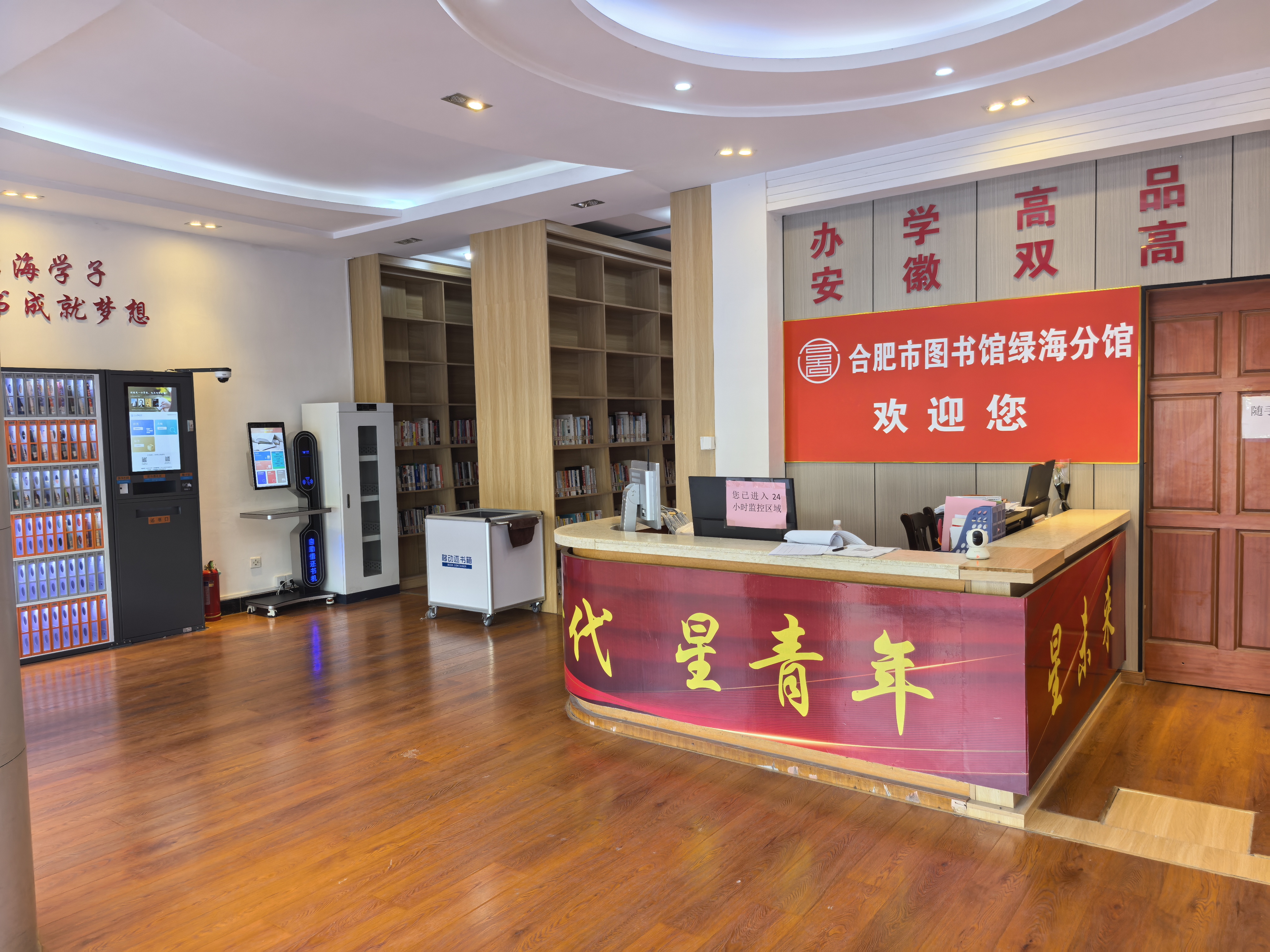 校门口的合肥市图书馆绿海分馆,成了迎新季里一处特别的“驿站”。为了给初来乍到的新生与家长提供舒适的歇脚空间,刘老师提前一小时到岗,对分馆进行了彻底清洁:书架被细细擦拭,落尘尽数拂去;阅览桌椅按序归位,桌面光可鉴人;地面经过反复清扫拖拭,连角落缝隙都洁净如新。一番细致打理后,分馆内窗明几净,淡淡的书卷香与清新的空气交织,静静等候着新生们的到来。