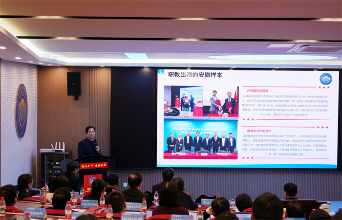 陈孝云指出,吉隆坡科技大学并购更名后获得社会各界广泛关注与关怀,并通过治理结构优化、企业深度合作、课程改革、产教融合深化、人才培养升级、鲁班工坊打造等举措完成重要战略转型。吉隆坡科技大学以数字化和人工智能为核心驱动力,数字筑基、智能驱动、AI赋能,致力于培养教育、科技、商界和政治等领域的精英人才,定位为安徽职业教育国际化的重要前沿阵地,目标成为东盟区域的科技与教育中心,服务地方发展,服务中马产能合作,为两国产业和产能提供人才支撑和智力支持。