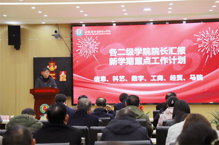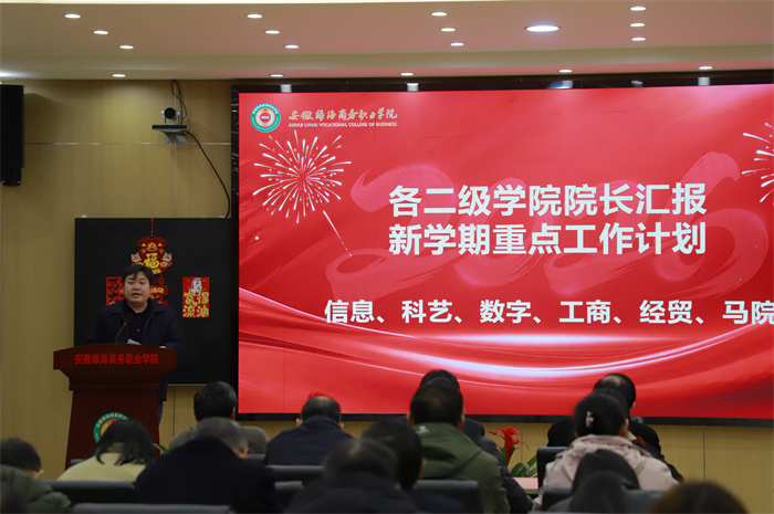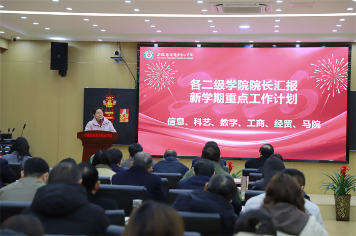 各二级学院负责人就新学工作思路汇报发言。大家紧扣学校战略目标,立足专业特色,分别从深化“AI+”专业建设、推进艺术与科技融合、打造数字电商产教融合基地、强化教学科研与竞赛组织、主动对接新兴产业需求、将“星青年”理念融入思政育人体系等方面亮目标、谈举措、表决心,展现了全校一盘棋、聚力谋发展的良好态势。