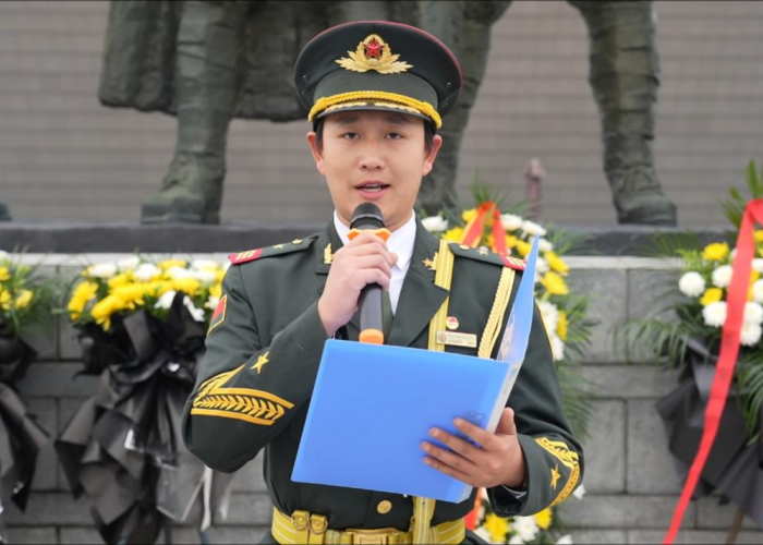 在全体人员的热烈掌声中,校党委委员、行政文化总监张义廷发表讲话。他指出,渡江战役是中国革命史上的光辉篇章,革命先烈们抛头颅、洒热血,用生命与鲜血铸就的伟大渡江精神,是中华民族弥足珍贵的精神财富,更是新时代青年砥砺前行、勇毅奋进的不竭动力。