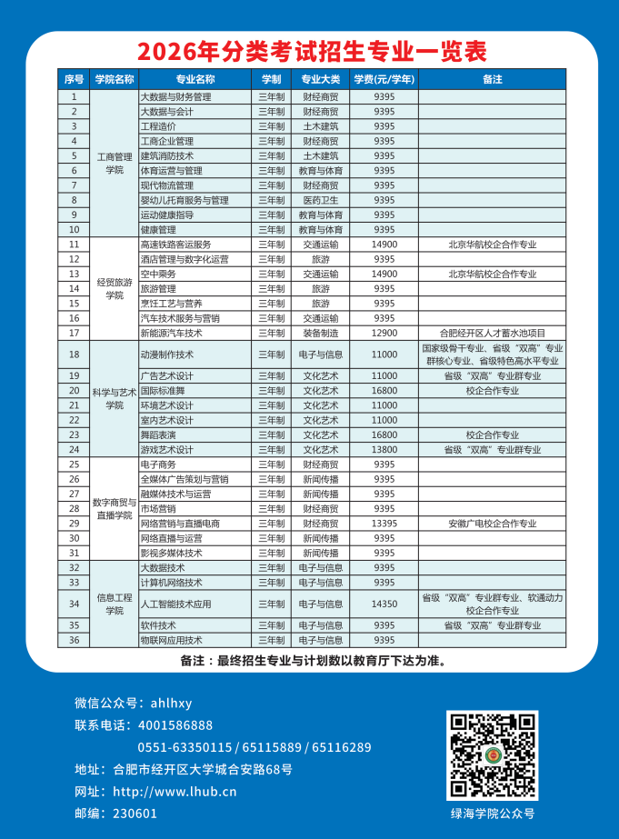 2026级新生收费标准