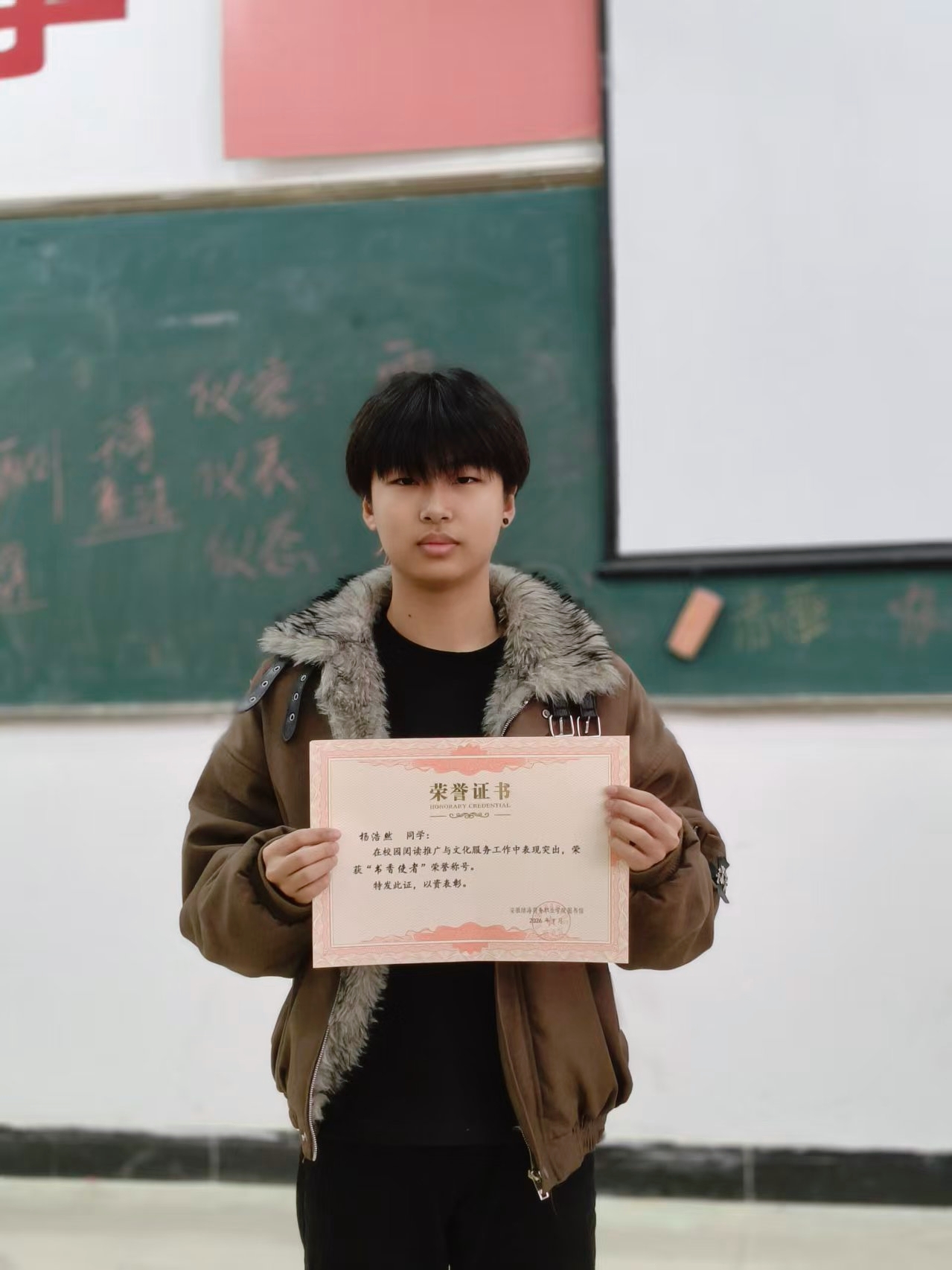 来自经贸旅游学院的杨浩然同学,作为“书香使者”荣誉获得者,深情分享道:“很荣幸被授予‘书香使者’这份荣誉。读书,是一场向内行走的旅程;传书,则是一份温暖的传递。这份称号对我而言,不仅是肯定,更是一份责任。未来我会继续带着对文字的热爱,多读书、读好书,把书香分享给更多人,让阅读成为一种习惯,让书香点亮更多人的生活。”